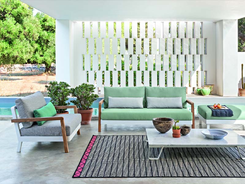 The same elegance and compositional freedom that Paola Navone demonstrates in her interiors allow you to personalise your terrace, pool deck, lawn or garden without stylistic restrictions.