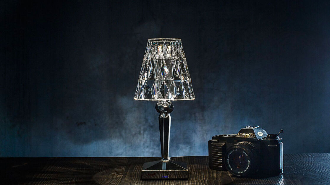 The Battery table lamps are designed by Ferruccio Laviani. It is a compact, portable object with a lampshade. It truly embodies innovation as there is a ytt battery inside, which is rechargeable and can last up to 8 hours without recharging. This makes it easy to use the lamp outdoors, for example on the terrace of a café or restaurant.