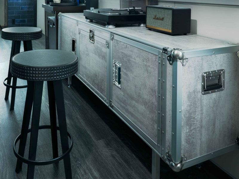 The stylish Total Flightcase chest of drawers is another striking model from the Diesel Creative Team collection. The designers were inspired by the concept of music equipment and instrument boxes. This is evident in the clear, somewhat heavyweight contours, the metal frame of the box and the solid, semi-concealed handles of chrome steel. A luxurious author's model for an unconventional ambience.