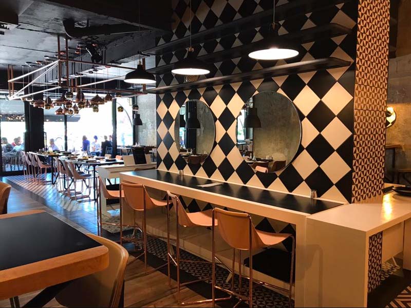В ресторане Sendi нашел отражение остро-модный тренд последнего iSaloni – нежно-розовая пудру в сочетании с золотом. Утонченная цветовая гамма, сглаженные углы, плавные линии придают коллекции воздушность и позволяют интересно обыгрывать даже немногословный и сдержанный интерьер.