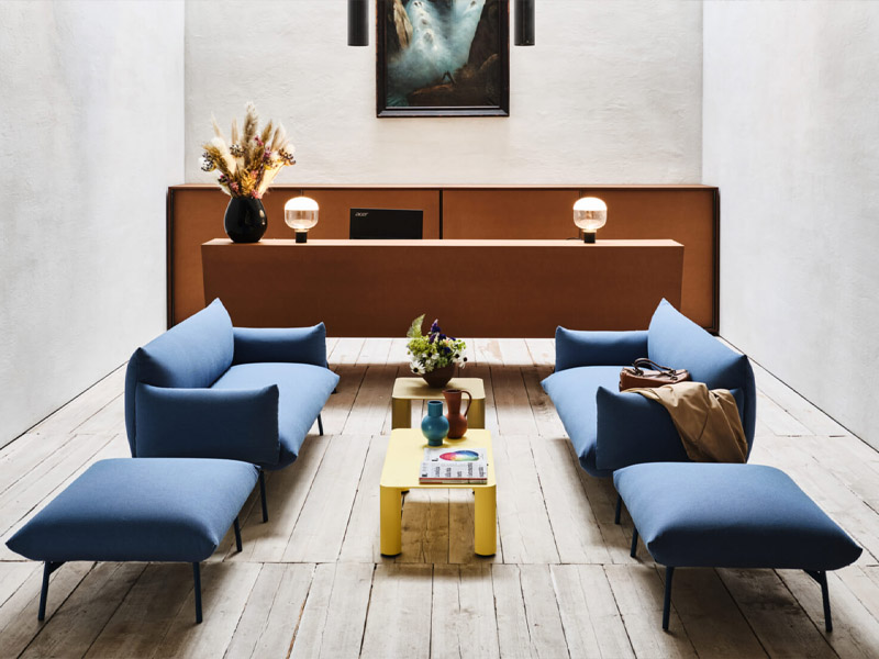 Коллекция характеризуется мягкими линиями и очевидным отсутствием несущей конструкции. Тонкая металлическая структура в основании создает резкий визуальный контраст с объемными подушками. Последние подчеркивают легкость коллекции настолько, что каждый элемент кажется свободно парящим в воздухе. Плавные изгибы, мягкие обволакивающие формы, непринужденная простота дизайна – все это делает сиденья уютными и гостеприимными, подходящими как для контрактного, так и жилого сектора. Area – динамичное решение на полпути между рабочим местом и зоной отдыха.