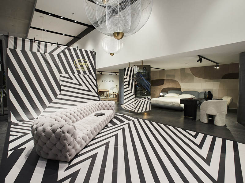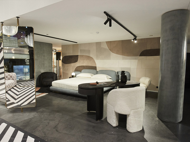 Первое, что видят посетители на входе в салон, – диван Chester Moon, один из самых знаковых продуктов бренда. В спальной зоне демонстрируются предметы из новой коллекции, такие как кровать Stone, кресло Leon и ковер Himani C, а также кресло Nepal Mama, стул Lazybones и письменный стол Parsec. Уникальное сочетание материалов, характерное для Baxter, особенно поражает в гостиной, где клиент находит еще два хита фабрики: диваны Piaf и Tactile, а также кресла Greta SE Printed и Marilyn, пуф Anais, столы Placè, Фивы и Liquid и ковер Atlas. В обеденных зонах кожа стульев Gemma и Gemma сочетается с изумительными камнями столешниц Lagos и Selene. Дополняют пространство книжный шкаф Libelle и витрина Float.