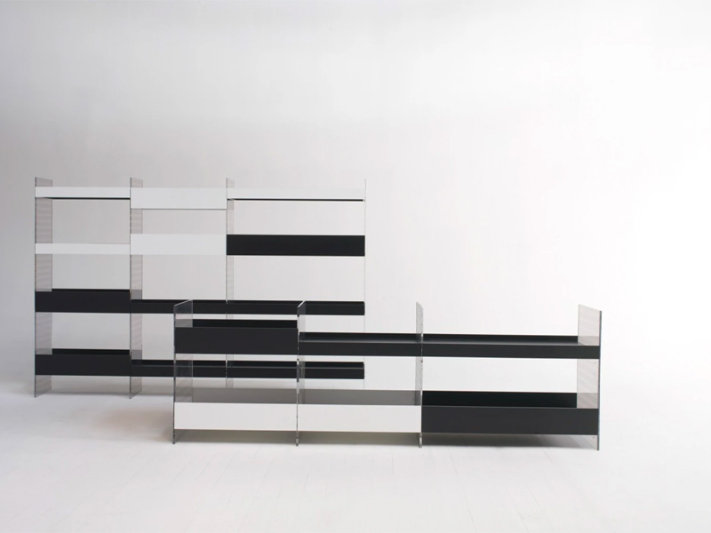5. Модульные стеллажи B-Side с черно-белыми полками придадут графичности и украсят любой интерьер. Конструкция выполнена из окрашенной порошковым способом стали, стенки – поликарбонат, поверхность которого украшает лазерная гравировка. Дизайнер: Patricia Urquiola. Размеры: 241x33 h161.