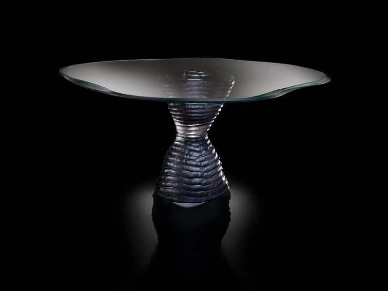 Чтобы отпраздновать первые тридцать лет бренда Reflex, специализирующегося на хрустальной мебели, Лучано и Риккардо Лукателло создали стол Murano в массивном стекле. Форма песочных часов также воссоздает контуры холмов, в то время как фактура напоминает движение кругов на воде, переходя от серого до синего. Модель выпущена в ограниченном количестве.