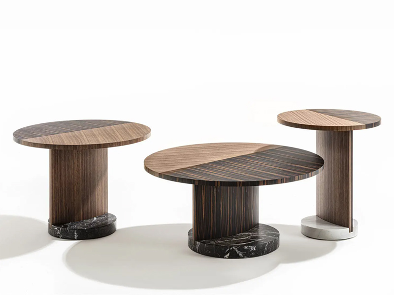 По задумке Патрика Жуана на мраморном основании вырастает серия журнальных столиков Leaf. Отличительной особенностью коллекции является сочетание различных деревянных отделок. Производится на итальянской фабрике Porada.