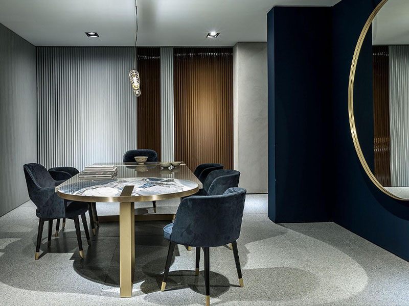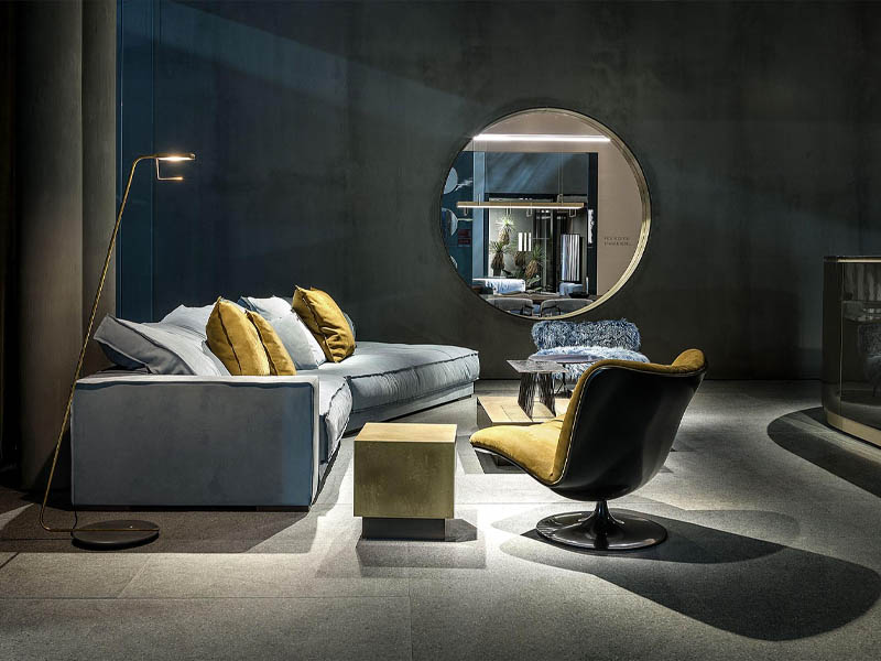 По случаю Миланского мебельного салона итальянский производитель премиальной мебели Baxter предлагает новую впечатляющую экспозицию. «Вавилонское столпотворение» - так характеризует сама фабрика смешение стилей, материалов и форм, заявленное на iSaloni. Творческие исследования продолжаются не только в активном смешении гладких и шероховатых поверхностей, но также и в новом тренде – три полосы из различных материалов для одного изделия. Производитель вводит и древние камни из редких месторождений полезных ископаемых, их необыкновенно выразительные цвета еще ярче играют на фоне гладких лакированных поверхностей и создают необычные контрасты света. Производитель не изменяет своей страсти и составляет экспозиционный «калейдоскоп» в уже привычной цветовой гамме: зеленый бордо, коралловый и серый.