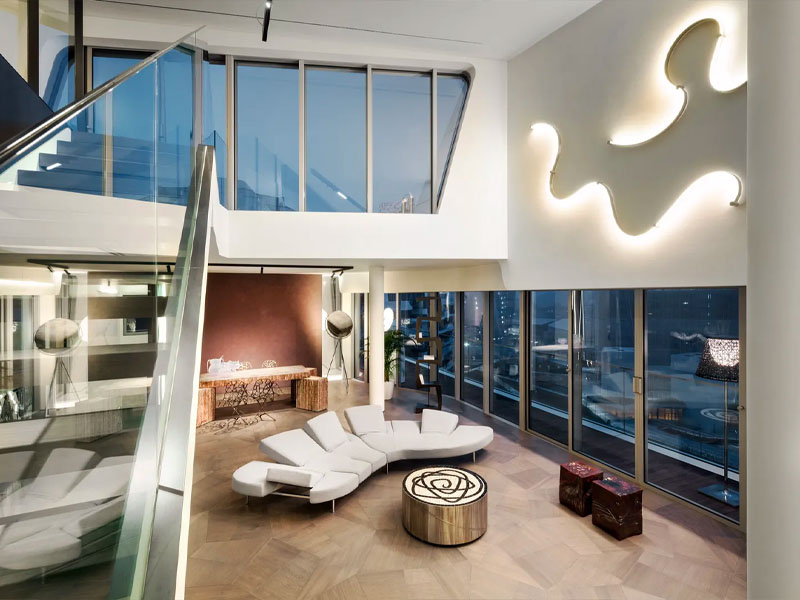 Жилое пространство пронизано духом современного мегаполиса. На площади в более чем 300 кв.м. искусно сочетаются именитые мебельные бренды. В каждой мелочи присутствует продуманный дизайнерский подход, объединяющий красоту и повседневный комфорт.