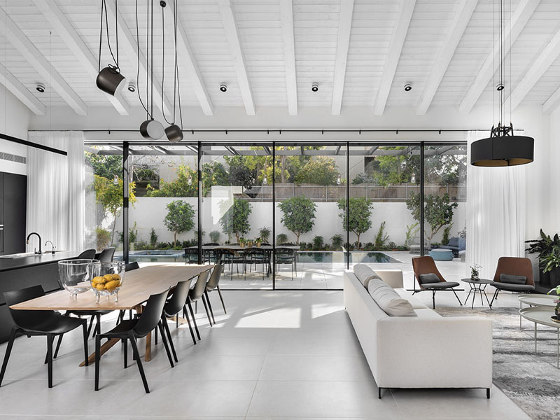 Один заказчик обратился к дизайнеру интерьеров Нурит Геффен с нестандартной просьбой. Он желал дом, где все пространство было бы организовано вокруг кухни. Проект должен был учитывать потребности семьи с тремя детьми, где мать имеет инвалидность, ограничивающую ее подвижность. В то же время глава семейства мечтал о стильном и просторном интерьере, не имеющем ничего общего с домом престарелых.