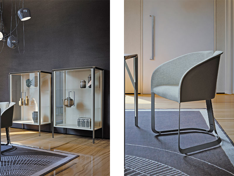 Новый предмет появился и в коллекции Андреа Бонини Zenit, выпущенной в 2020 году. Новинка фабрики – сервант, спроектированный специально для обеденной зоны. Он интересно смотрится как в комплексе со столом и стульями Zenit, так и в качестве самостоятельного элемента интерьера. Одна из сильных сторон Turri заключается как раз в умении создавать эффектную и при этом универсальную мебель – в том числе за счет комбинирования дорогих материалов. Так, в новом серванте конструкция с тремя закрытыми лакированными створками из дерева намеренно “прерывается” обтекаемым, обтянутым кожей блоком с открытой полкой.