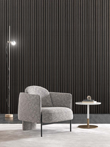 Ассортимент включает 240 новых тканей, которые превосходно сочетаются с деревянными материалами и создают множество визуальных и тактильных решений. Лаки и дерево, ткани и кожа разделены на хроматические сферы и гармоничные сочетания, после чего скомпонованы для создания 11 различных настроений.
