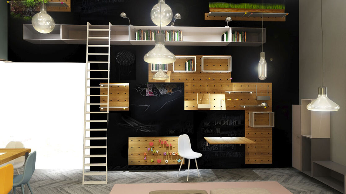 Дизайн Play Kitchen разработан Febal Lab – мастерская идей Febal, созданная для поддержки новых проектов и реализации ярких, необычных, инновационных предложений. Идея кухни состоит в реализации новых интересных экспериментов путем введения динамических, многофункциональных элементов для создания "игрового" образа и персонализации интерьера в соответствии с индивидуальным образом жизни.
