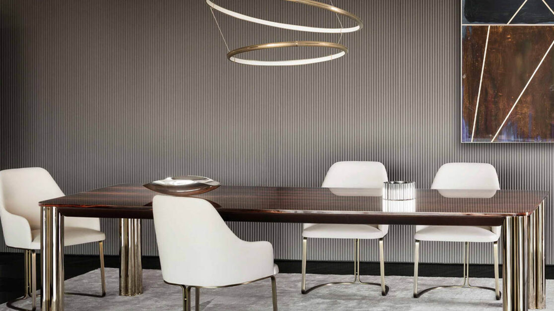 На фото – модельный ряд от итальянской фабрики Rugiano. Бренд давно стал синонимом изысканности и тонкого вкуса. Из маленькой мастерской, где выпускались кованые аксессуары, компания преобразовалась в большое современное производство. Здесь выпускают мебель премиум-класса; и именно здесь вы точно найдете стулья и столы, о которых давно мечтали.
