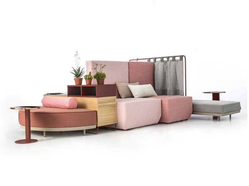 Новинка от дизайнера Вернера Айслингера для бренда Moroso: Bikini Island – модульная система, которая позволяет сочетать элементы для создания своего собственного пространства. Идея состоит в том, чтобы получить уникальный «остров» в центре гостиной при помощи различных компонентов – табуреток, столов, вешалок, контейнеров, полок.