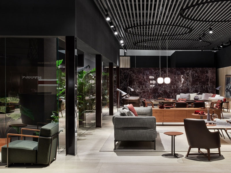 Итальянская фабрика Flexform оборудовала выставочное пространство в центре которого оживает живописный зимний сад, вокруг него – несколько залов с различными коллекциями. Компания продолжает работать в рамках концепции «Наконец, дом» и предлагает своему клиенту откровенно простую, но качественную и комфортную мягкую мебель. Так, на выставке представлены модульные диваны Adda и Este, столики Zefiro и Monreale, кресла-оттоманки Tosca, кровать Newbridge, а также кабинет с книжным шкафом Taylor.
