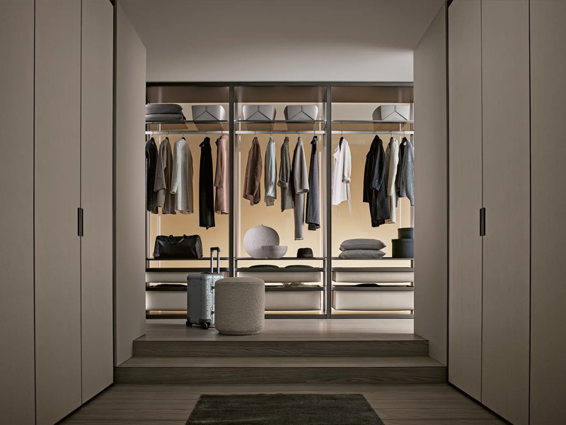 Конек итальянской марки Rimadesio – модульные системы хранения – эволюционируют и становятся все более совершенными. В результате проектного сотрудничества фабрики с архитектором Джузеппе Бавузо появилась новая система хранения Modulor. Оцените преимущества: 158 возможных покрытий для дверей, в том числе беспрецедентная отделка из алмазного стекла (на фото): слегка зазубренная, приятная на ощупь текстура.