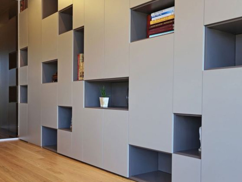Напротив системы для ТВ (еще одна шедевральная вещь в этом доме от Пьеро Лиссони) – библиотека Selecta, представляющая собой кинематографическую композицию из открытых и закрытых модулей и позволяющая аккуратно спрятать от глаз технику. Все Lema.
