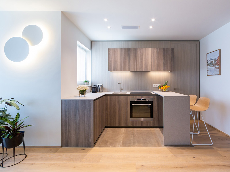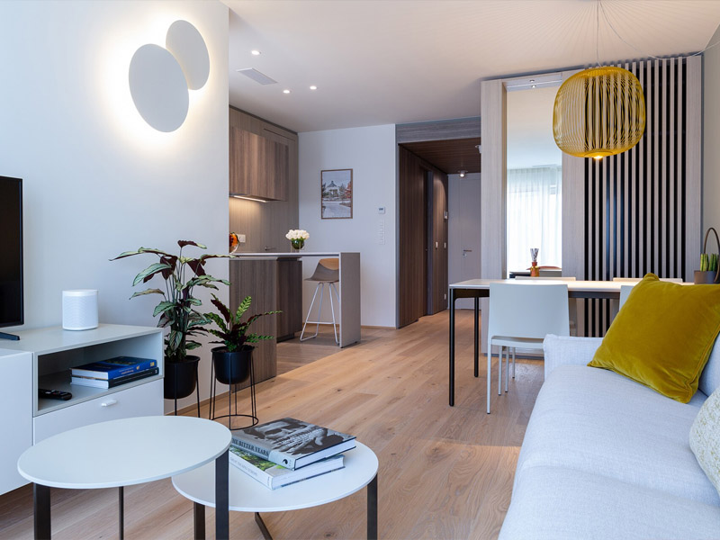 Фабрика Lema полностью оформила 28 квартир в комплексе. Помимо выполненных на заказ элементов, здесь присутствуют серийные предметы. Например, кресло Bice от Роберто Лаццерони, круглый журнальный столик Sign, представленный мастерами Studio Kairo, стулья Toa из коллекции Officinadesign Lema, где классическая форма воплощается в прочной металлической конструкции с цветной лакировкой. В стандартной комплектации, но кастомизированные по размерам и отделкам находим здесь столы Luce и систему T030 – проекты Пьеро Лиссони. Наконец, в проекте не обошлось без Armadio al Centimetro Text – исторической программы шкафов Lema, которая предлагает максимальную свободу дизайна и персонализации. Программа разработана вокруг базовых элементов, адаптируемых по высоте, ширине и глубине, дополненных распашными и раздвижными дверьми. Благодаря инновационной запатентованной системе очистки воздуха шкафы Lema играют активную роль в устранении посторонних запахов и дезинфекции одежды и обуви.