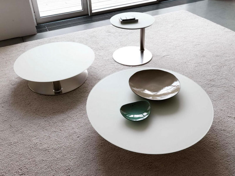 9. Журнальные столики Désirée Kara – это модель со столешницей из матового или полированного стекла толщиной всего 10 мм. Особенно эффектно смотрится сочетание нескольких таких столиков – различных по высоте и с различным диаметром столешницы.