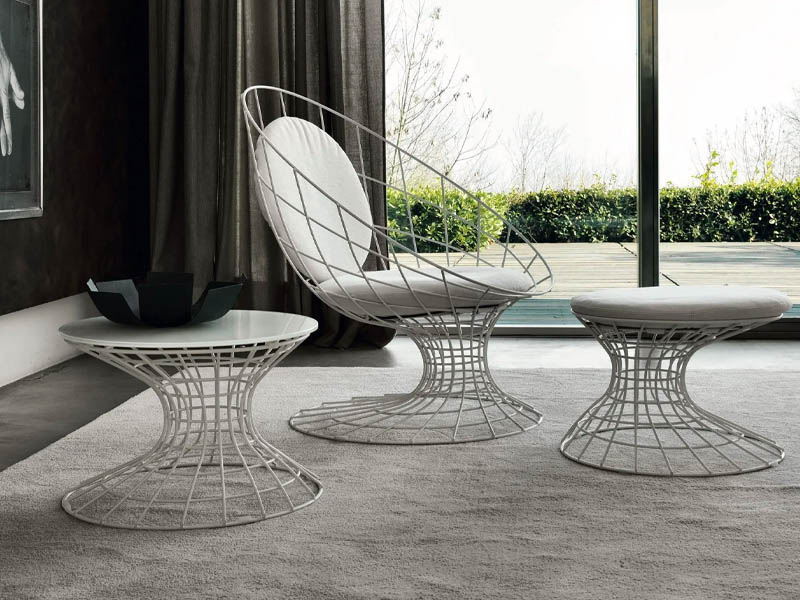 12. Пересечение тонких гнутых металлических прутьев формирует облик этого потрясающего кресла Désirée Filo. Обивка полностью съемная, а каркас предлагается в белом/ черном лаке или в полированной отделке. Функциональную модель можно использовать как в интерьере дома, так и на открытом воздухе.