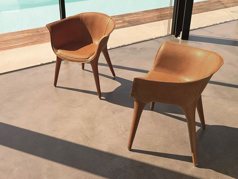 6. Кресло и пуф Désirée Kara в полной мере отражают философию фабрики, сочетая качество материалов и внимание к деталям. Твердый каркас из ламинированного дерева обрамляет мягкие подушки в кожаной обивке.
