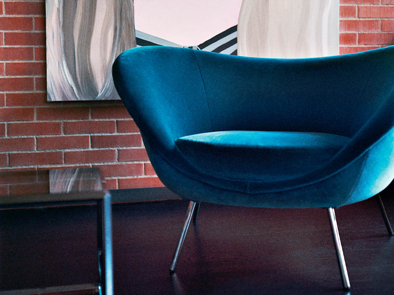 Так, это сразу два культовых кресла из коллекции Джо Понти от Molteni&C. Модель D.154.2 – ремейк модели великого архитектора 1953–57 гг. Обволакивающая форма ракушки, приятный текстиль (Массимо Джорджетти выбрал в ультрамодном сапфировом оттенке), правильные пропорции и наклон спинки – это кресло создано для того, чтобы дарить дому гармонию и уют.