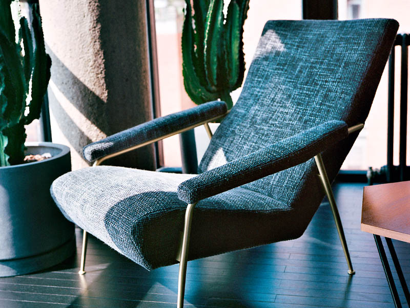 Вторая модель – дань итальянскому маэстро – носит название D.153.1 и была разработана Джо Понти в 1953 году. Обивочная ткань – интерпретация старого дедушкиного пиджака – позволяет добавить современному интерьеру винтажные нотки и придать уют.
