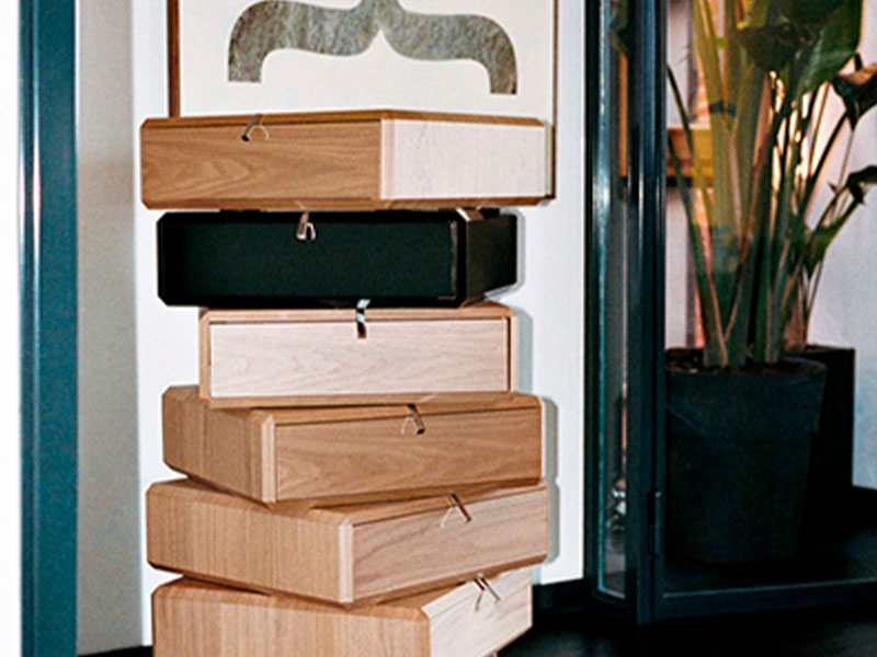 Рядом с известными креслами нашлось место и для новинки от Molteni&C 2017 – системы тумб и комодов Teorema от дизайнера Рона Гиларда. Самого автора можно назвать художественным механиком, а модель Teorema – эстетическим исследованием формы пустоты. Казалось бы, нарушая дисциплинарные границы дизайнерских теорий, Гилад воплощает собственную микро-архитектуру – увлекательную, стильную и наполненную особым смыслом. Модель изготовлена из американского ореха и позволяет собирать собственные вариации ночных столиков, тумбочек или модульных систем – подключая любое количество сегментов и выстраивая их по спирали, или прямой линии.