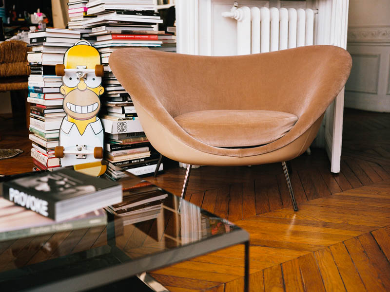 Как и основатель MSGM, Камиль останавливает свой выбор на кресле D.154.2 – только в более нейтральной, бежевой гамме.