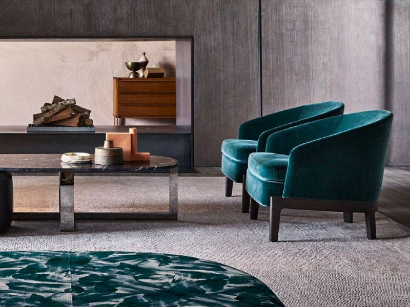3. Стулья с подлокотниками Chelsea спроектированы дизайнером Родольфо Дордони. Основание – дерево rovere grigio, обивка – фактурная ткань Tabacco. Размеры: 64x61xh69.
