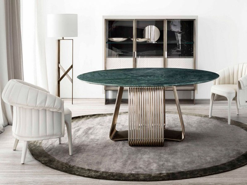 Философия марки базируется на спокойной элегантности и стоит за каждым продуктом Rugiano: его изысканной отделкой, вниманием к мельчайшим деталям, тонкостью ручной работы, использованием новых материалов и творческим переосмыслением традиционных мебельных технологий. Она угадывается в плавных чистых формах мрамора, элегантных бронзовых основаниях, ручной росписи и серебрении столешниц.