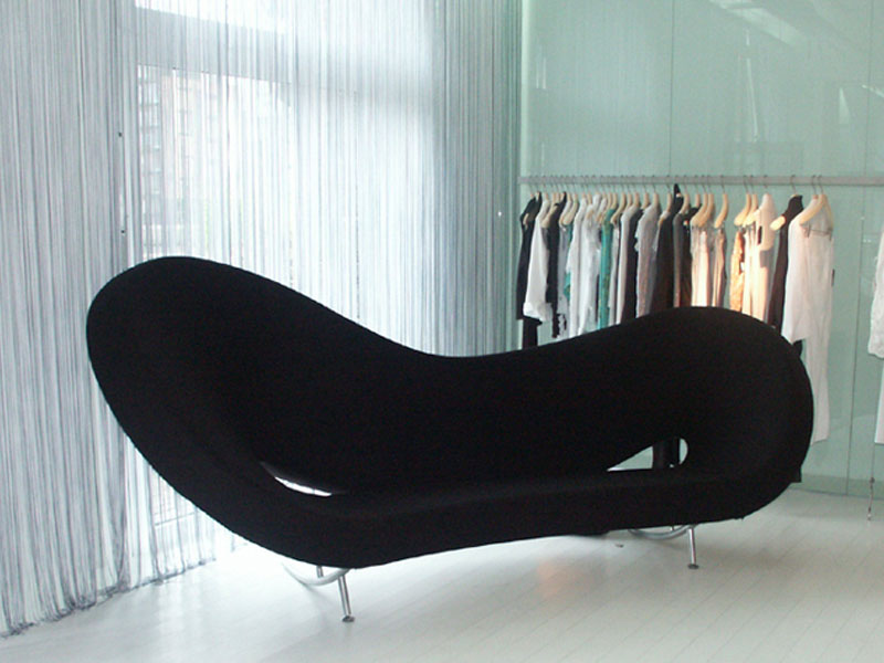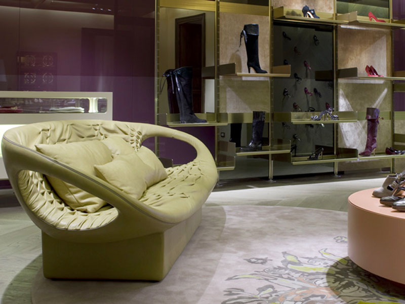 3. На первый взгляд, диван Smock от итальянской фабрики Moroso сливается с окружающим интерьером, однако благодаря экстравагантным подлокотникам и сложным формам модель является подлинным украшением бутика обуви Gianvito Rossi в Милане.