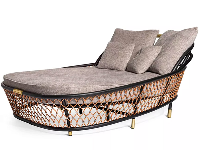 В линейке Farnese, разработанной дизайнером Самуэлем Мацца, появилась новая элегантная кушетка, вдохновленная одноименным стулом. Она выполнена из ротанга, кожи и пальмовых прутьев, согнутых вручную и соединенных между собой металлическими полосами с логотипом бренда. Кушетка также оснащена козырьком от солнца, который окружает изголовье, будто приглашая прилечь и отдохнуть от рабочих будней.