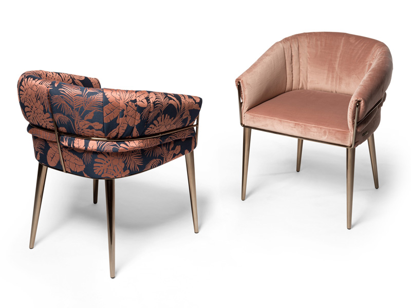 В новую коллекцию также вошло кресло Aminta дизайнера Джузеппе Вигано. Каркас стула выполнен из стальных труб, а к спинке прикреплен съемный мягкий чехол для использования в помещении. Вариант для улицы дополнен круглой подушкой, что делает его еще более универсальным.