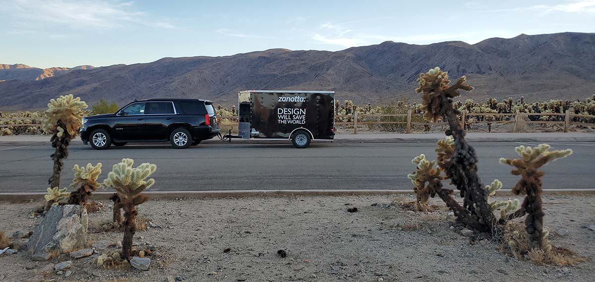 Фургон с тележкой, надпись Design will save the world, мебельные коллекции Zanotta и желание восстановить социальные контакты в беспрецедентный исторический момент… Итальянский бренд Zanotta инициировал четырехмесячный тур по знаковым местам Северной Америки. Во главе – Франческо Секьяроли, руководитель американского филиала компании.